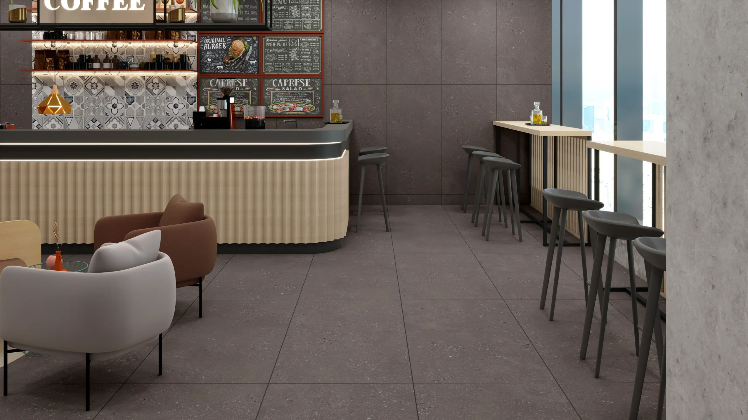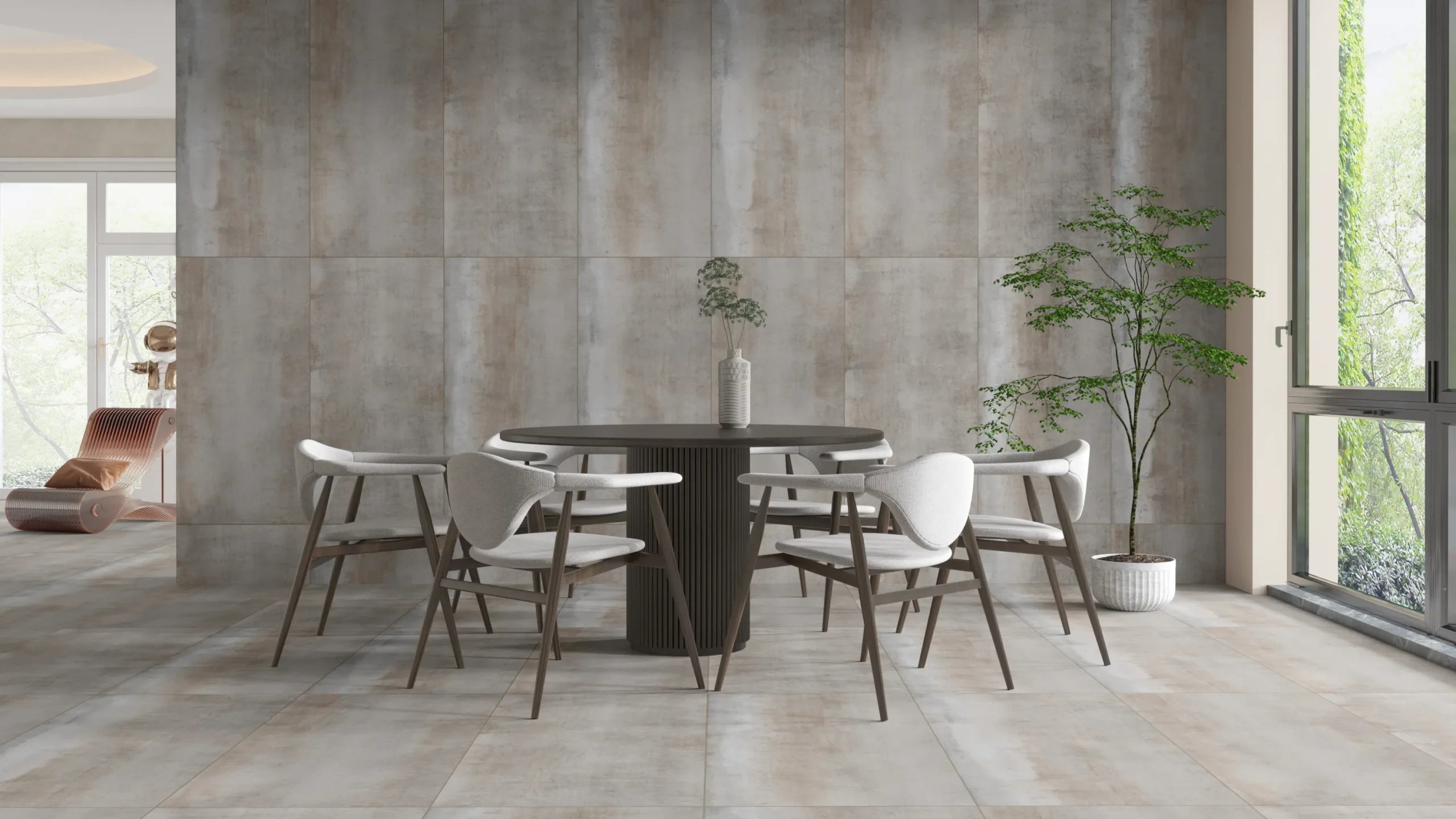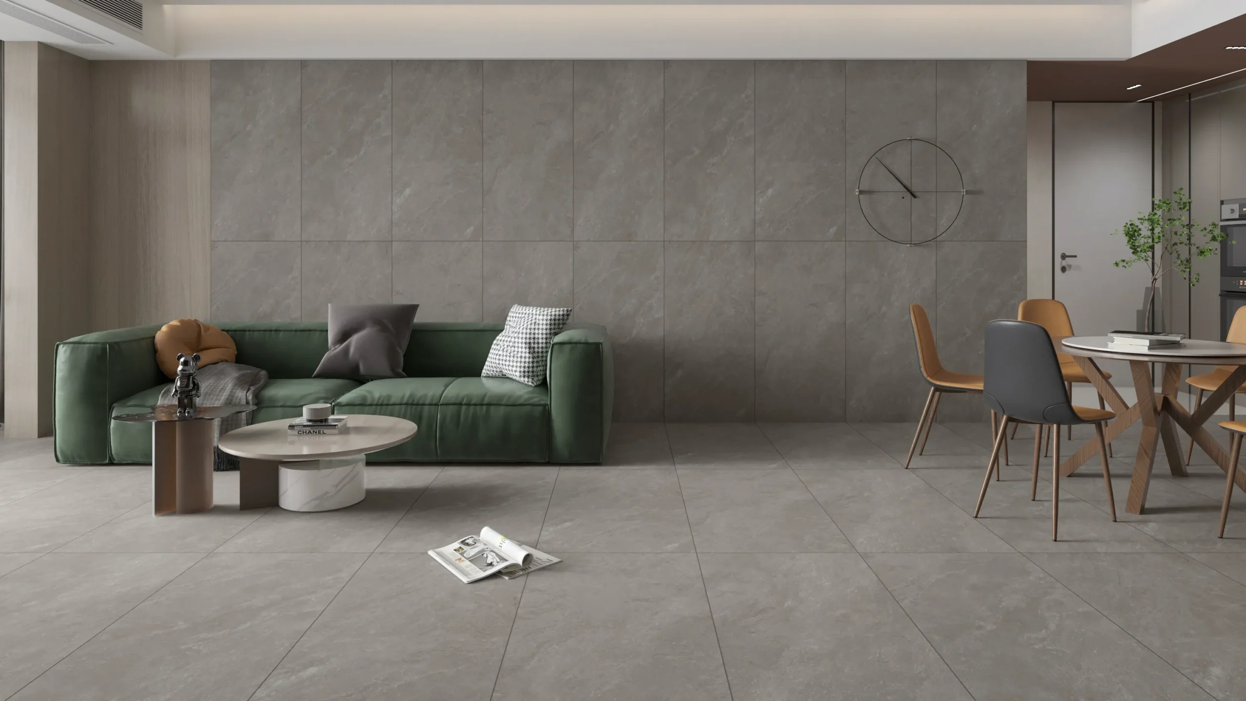 Concrete-look tiles, are gaining traction in minimalist, industrial, and contemporary spaces. They offer a sleek, urban feel while being low-maintenance and highly durable—ideal for modern lofts and commercial settings.