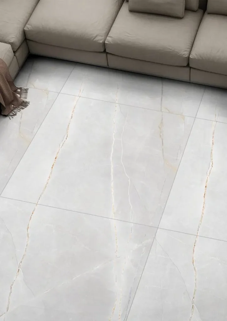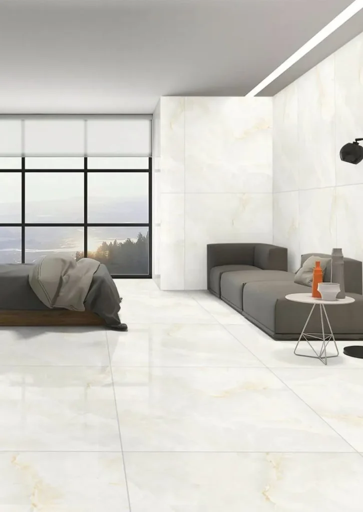 Tip: Choose larger formats (like 600×600, 600×1200, or bigger) to achieve a spacious, modern, seamless floor.