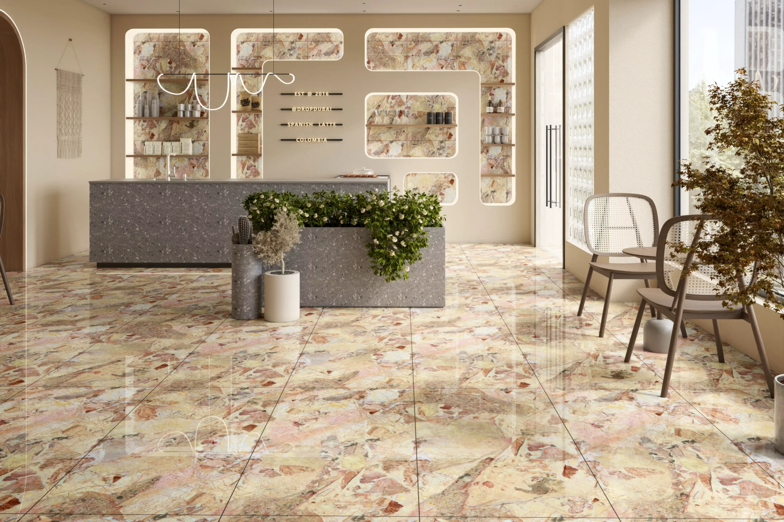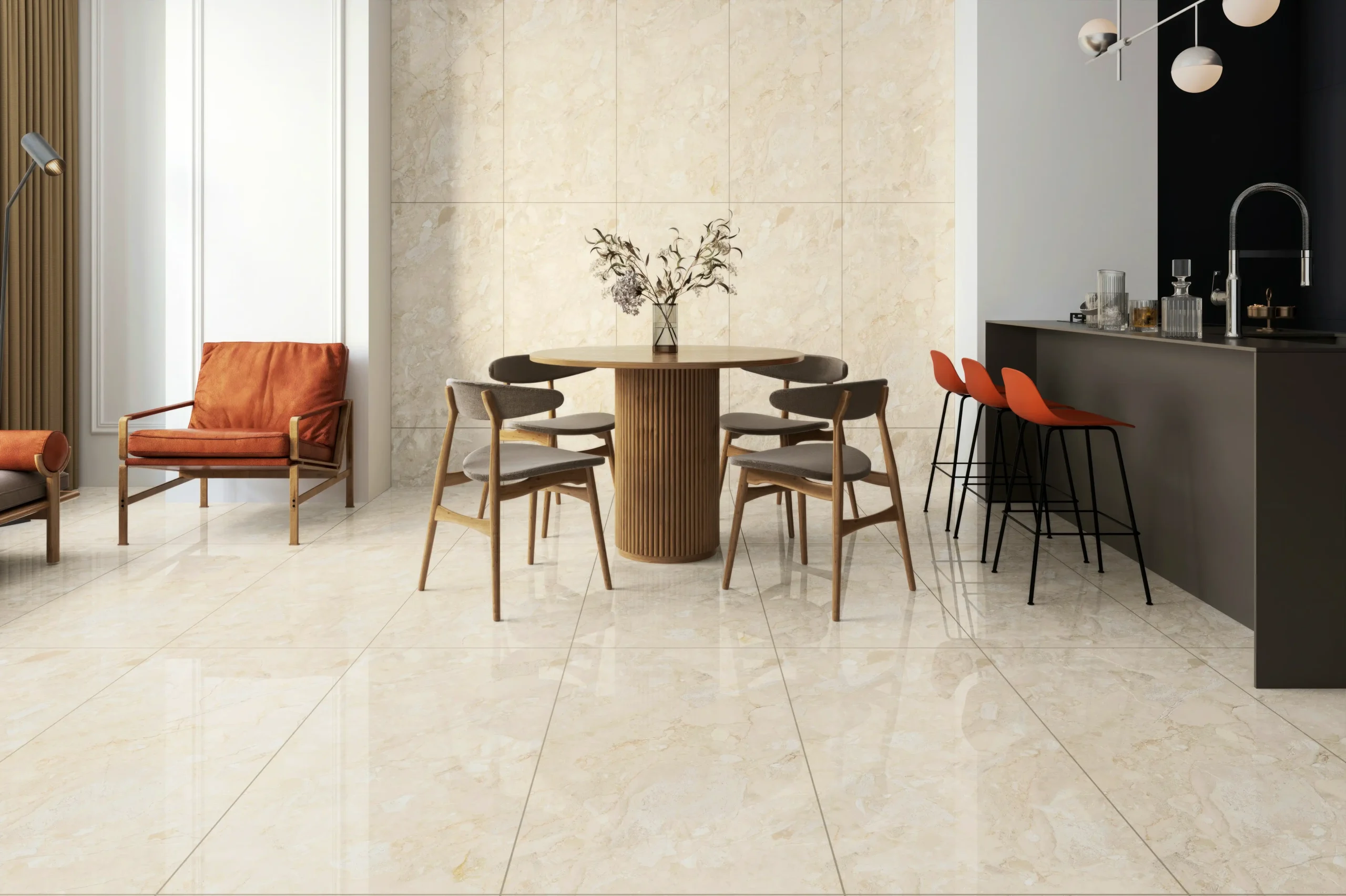 With a mirror-like shine, high gloss tiles are perfect for achieving a polished and sophisticated aesthetic. They work well in areas that demand brightness and elegance, such as dining rooms, offices, or showrooms.