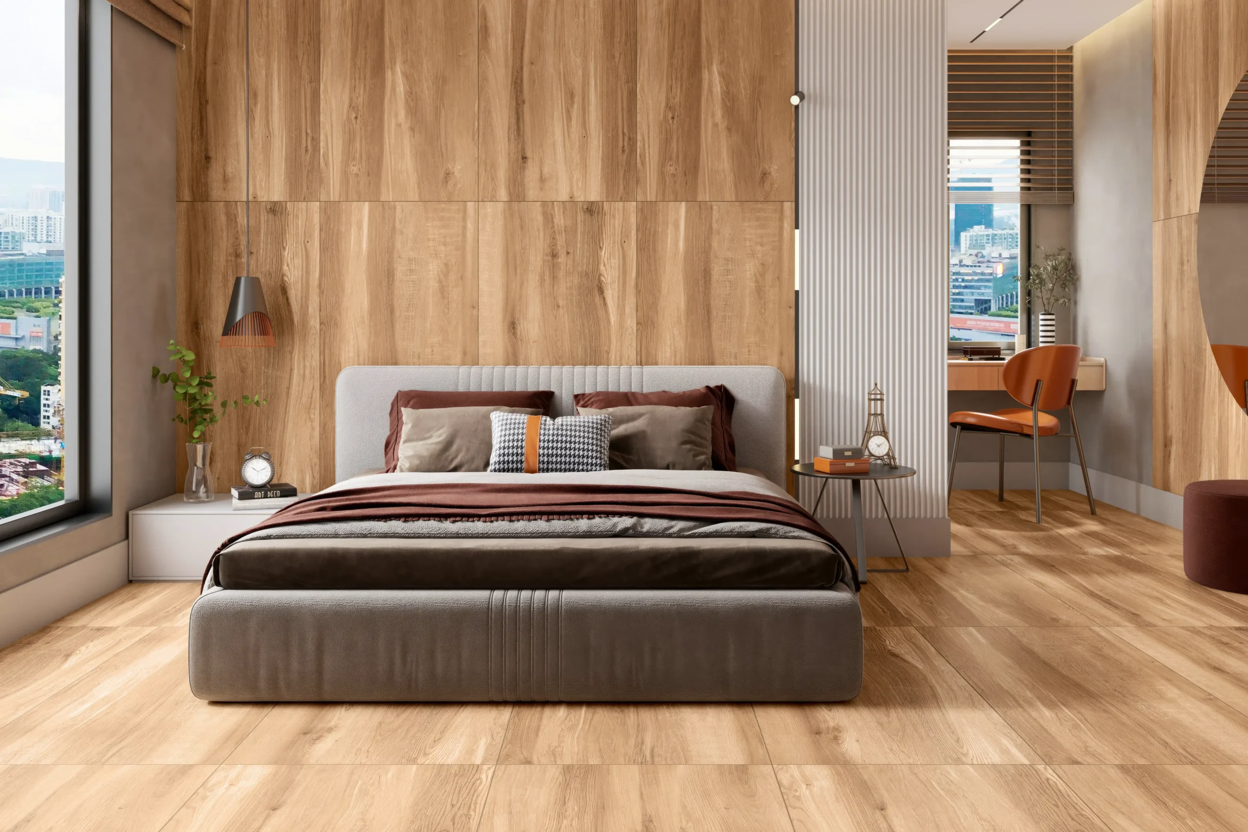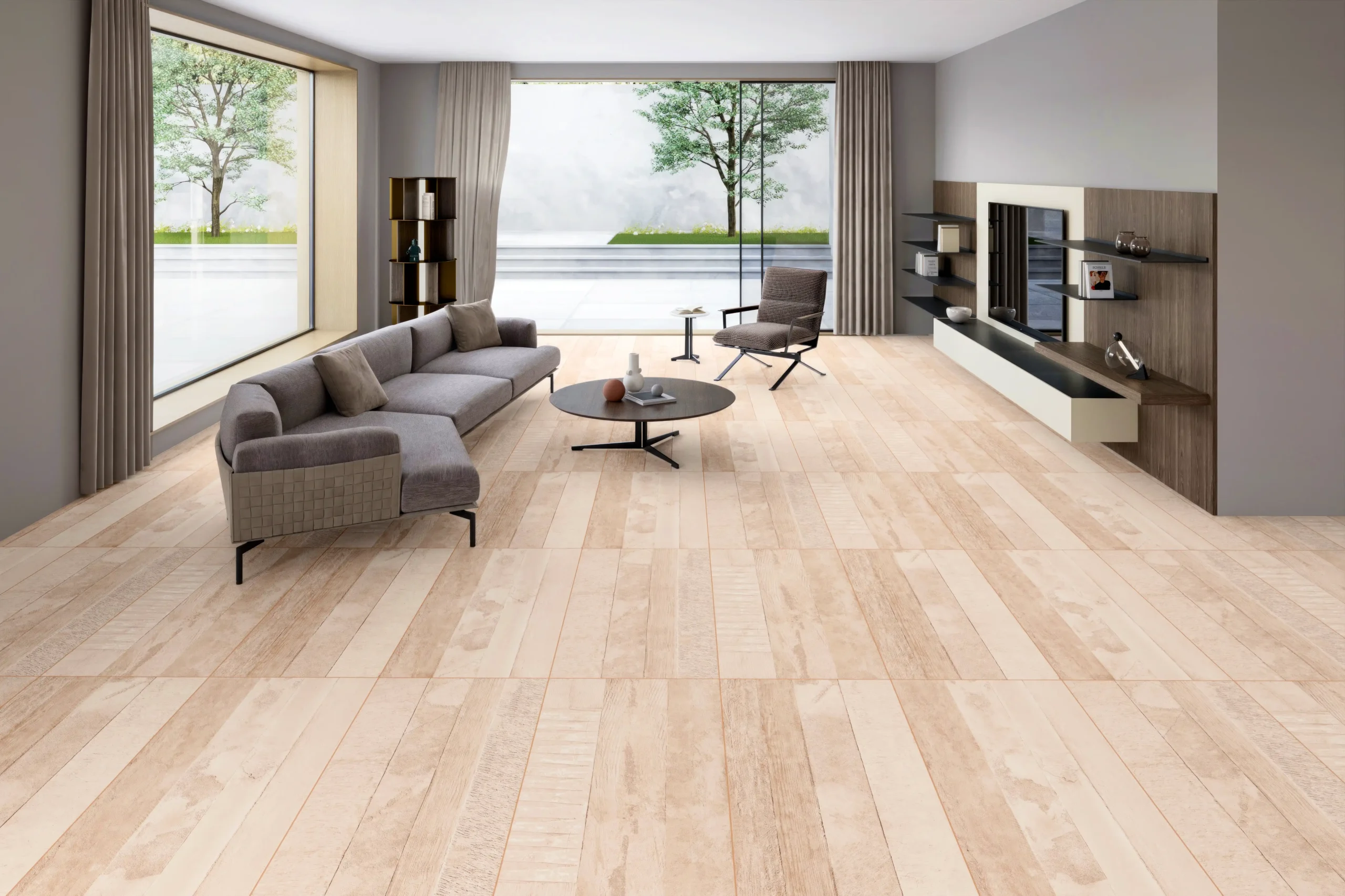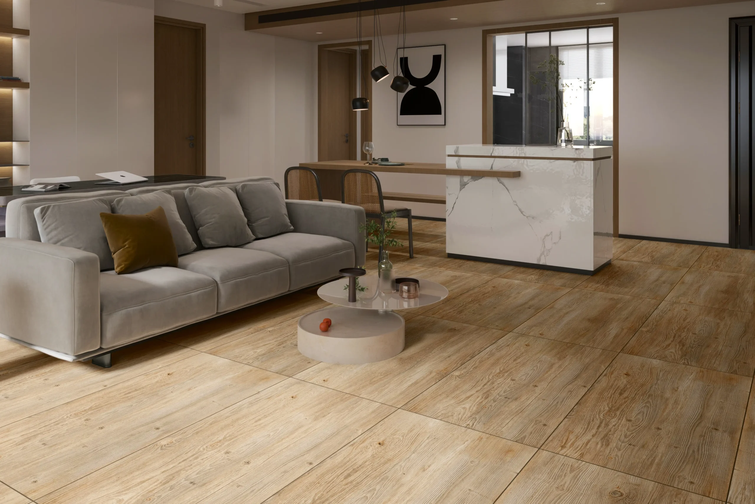 Wood look tiles combine the natural beauty of wood with the durability and practicality of tiles. Crafted from porcelain or ceramic, these tiles replicate the textures, grains, and tones of real wood, offering a warm and inviting aesthetic without the drawbacks of natural timber.